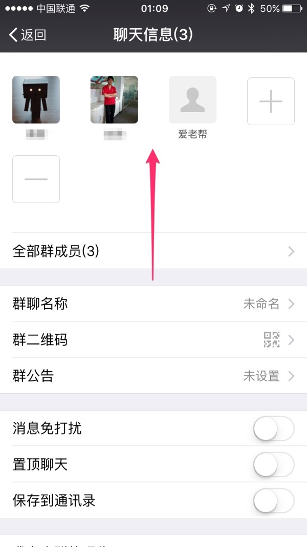 界面进入“聊天信息”后手指按住屏幕向上滑动