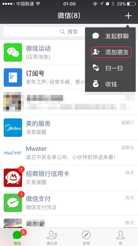 通过搜索添加好友时请输入完整的手机号、微信用户名、QQ号,否则搜索结果只会显示公众号。
