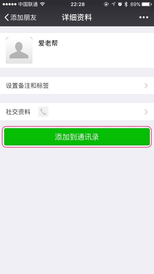 如果您输入的信息正确,则会跳转到您好友的信息页面,我们要添加的好友是“365bet游戏网站”,点界面下方的“添加到通信录”。