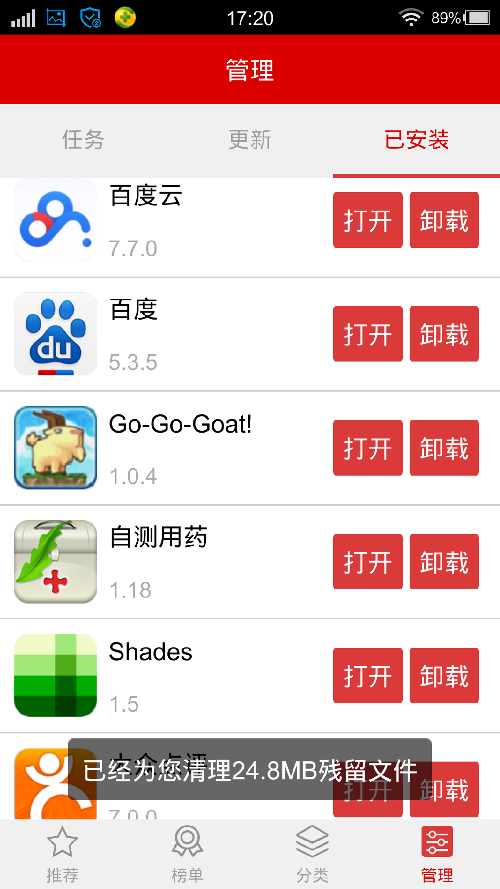 • 请在卸载某一款软件前,确认您已不需要再使用这个软件。