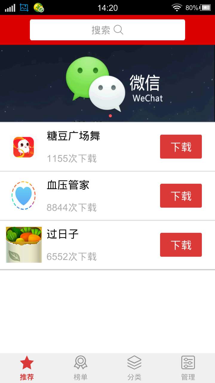 选择“管理”,在任务栏中可以查看通过”应用广场“正在下载或已下载的其他APP