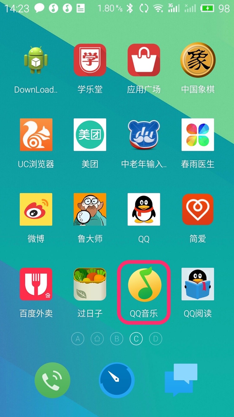 在桌面上找到“QQ音乐”的图标(黄色圆形内有一个绿色的音符)点它打开“QQ音乐”App