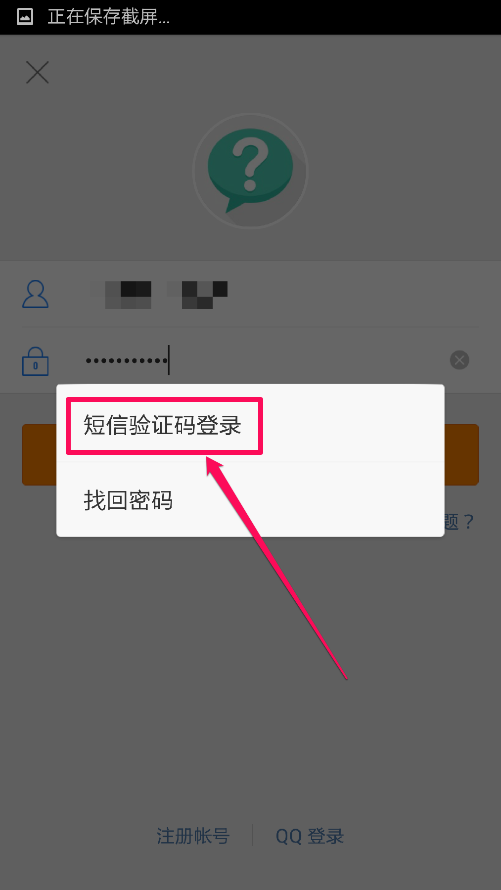 在弹出的对话框中选择”短信验证码登录“