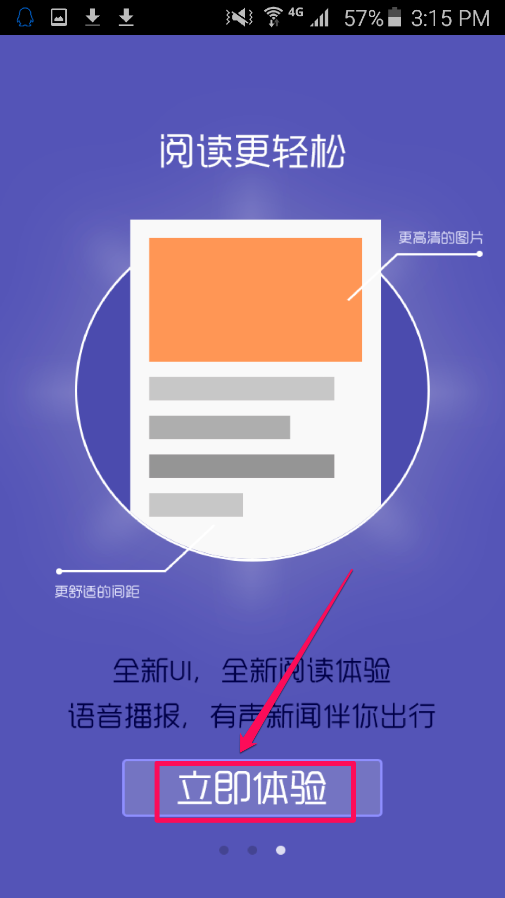 进入客户端,向左滑动屏幕,点击“立即体验”