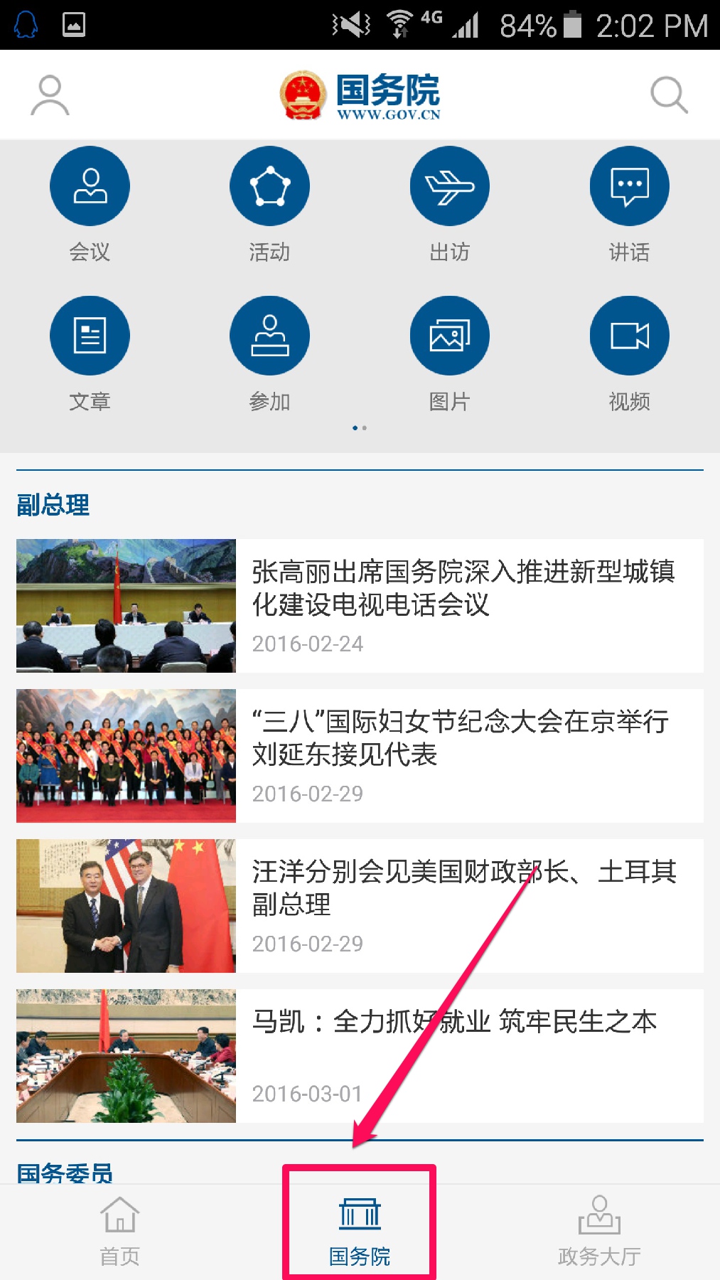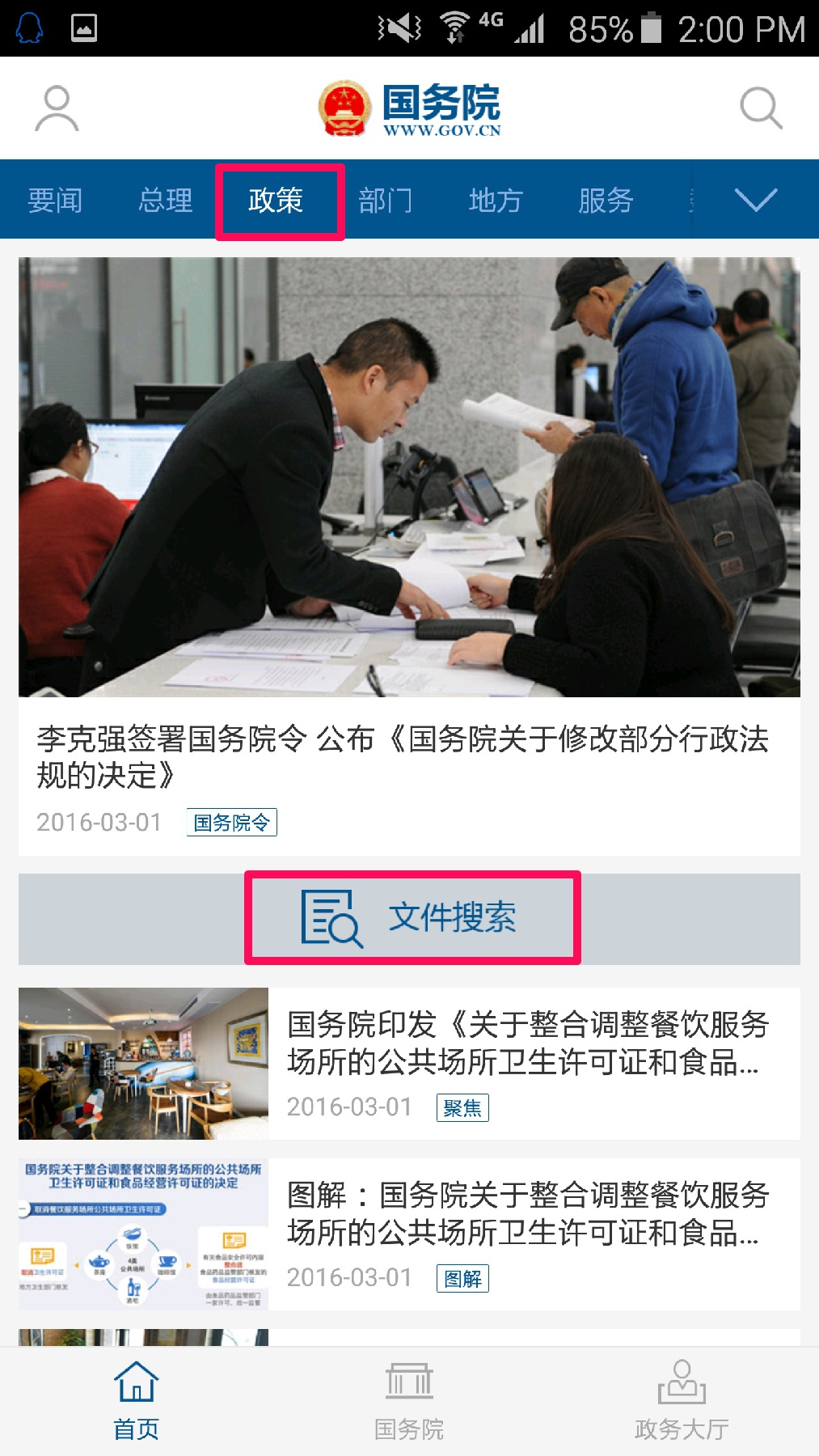 这是“国务院客户端”的首页