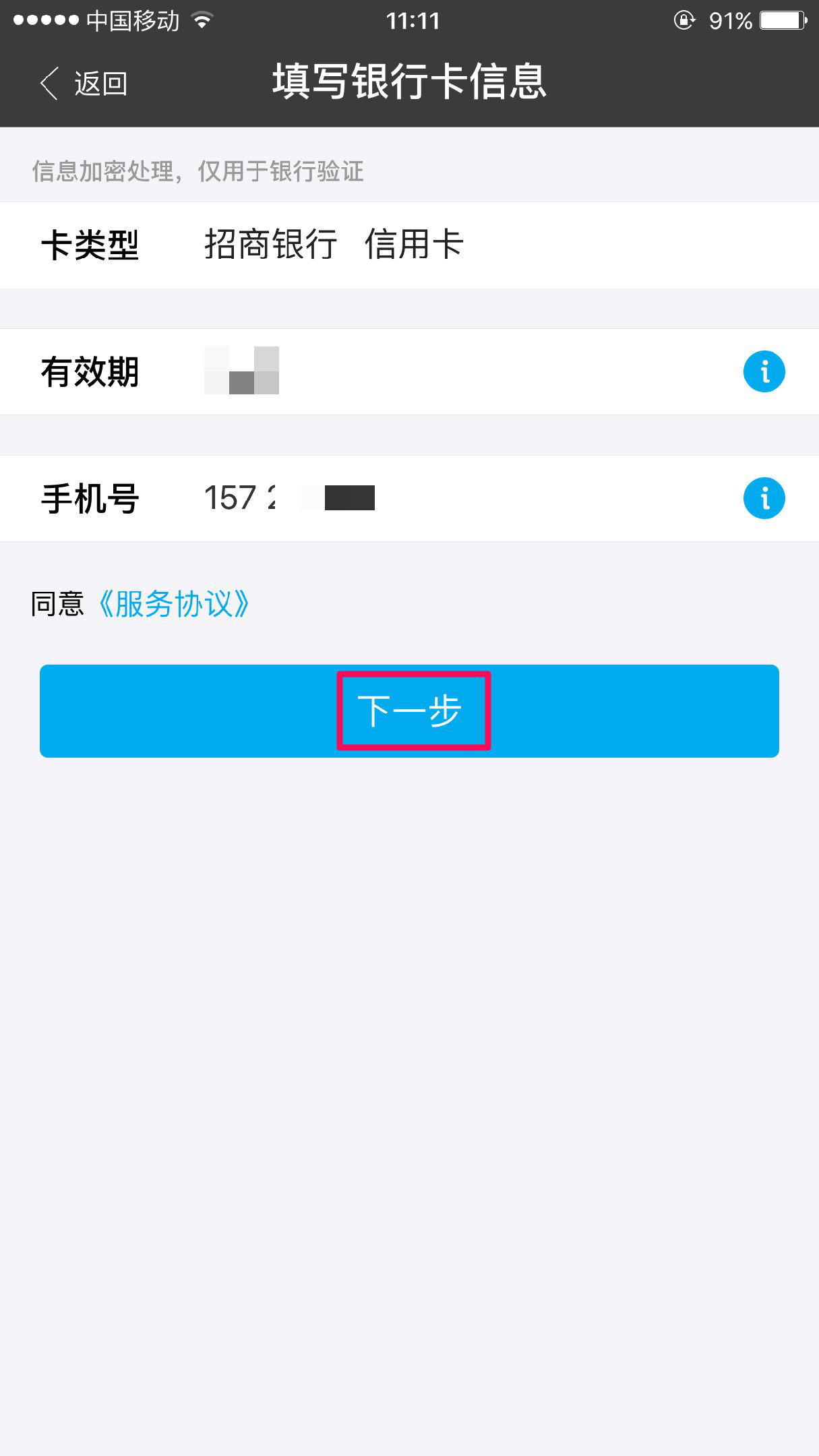 点击确认还款后,您将在60秒内收到一条短信,将短信中的验证码填写后,点击“下一步”按钮