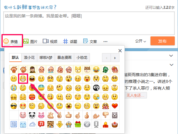 为了让微博的内容更加丰富,您可以选择添加合适的表情。在输入框的左下角有一个表情按钮,点击后可选择您喜欢的表情,单击它。这时,表情已添加至光标所在的位置,并自动转变成文字符号