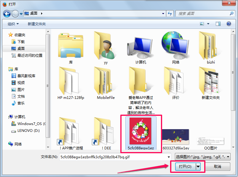 我们选择上传电脑里保存着的图片。单击要上传的图片,并点击”打开“按钮