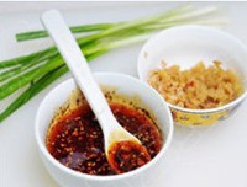 姜末50克,恝白50克,泡红椒末50克、蘇泥50克,精盐15克,白 糖20克,香醋30克,生抽50克,味精30克,红油100克,小麻油50克。