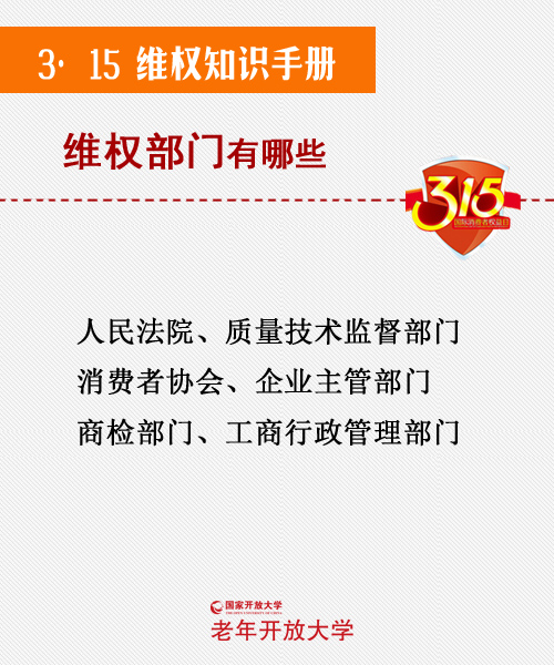 维权部门:人民法院,质量技术监督部门,消费者协会,企业主管部门,商检部门,工商行政管理部门
